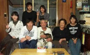 写真は、妻、孫5人、猫