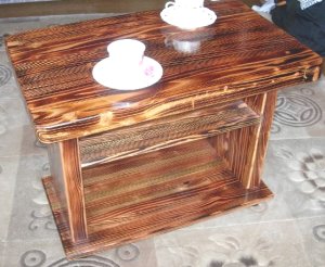 和風に焼いてから塗装 木の色をそのまま、オイル仕上げのテーブル(下記写真)